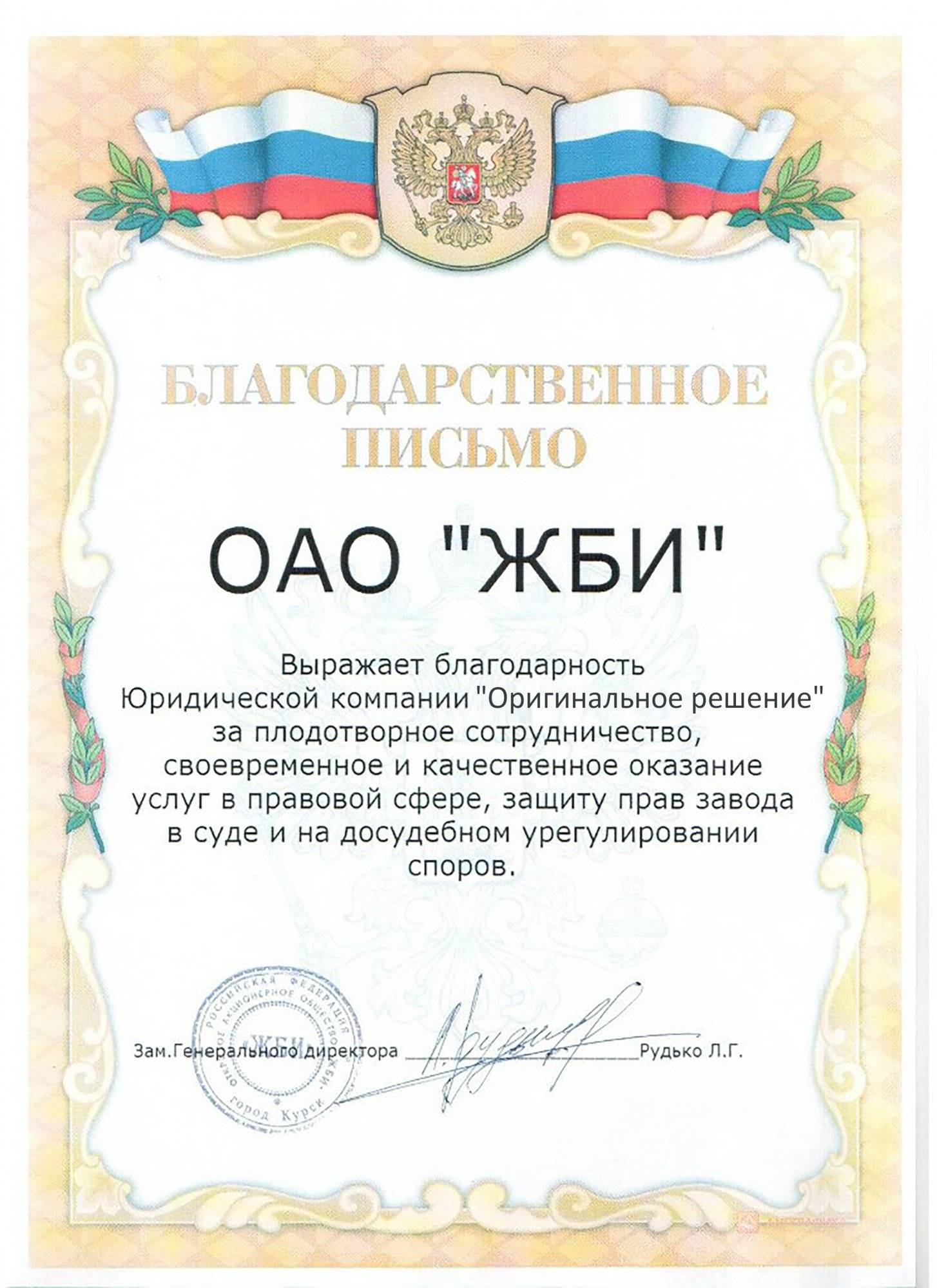 Благодарственное письмо