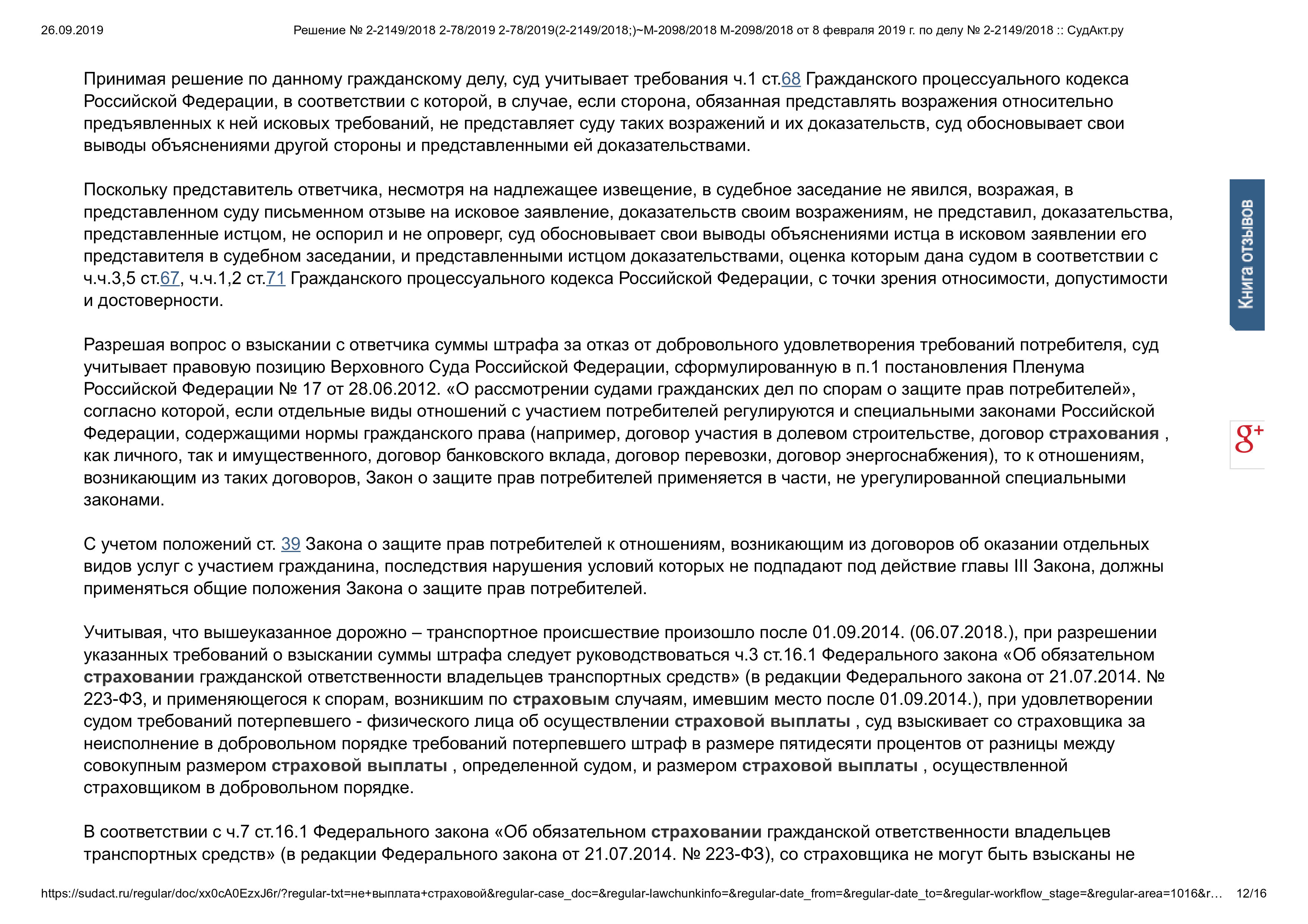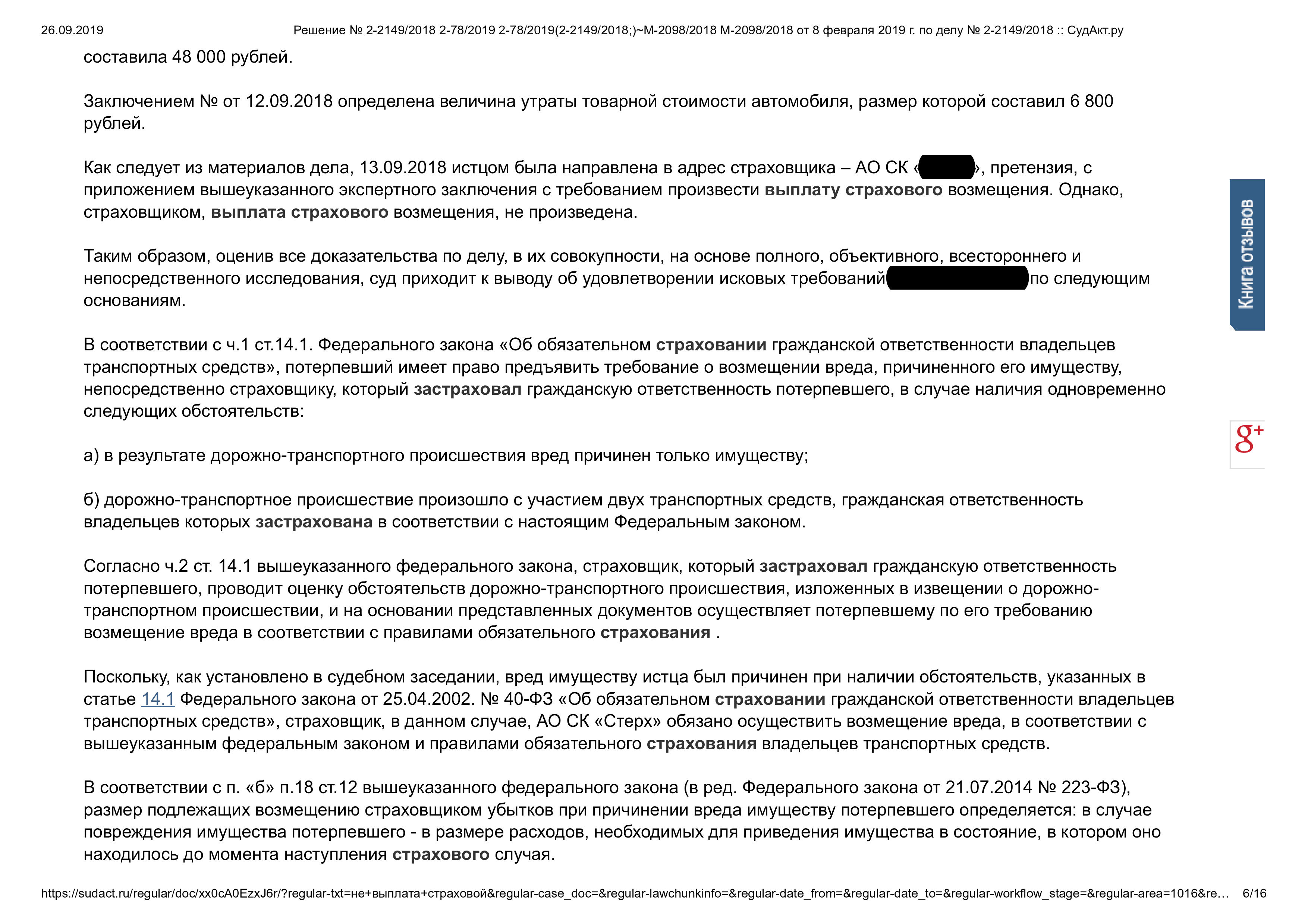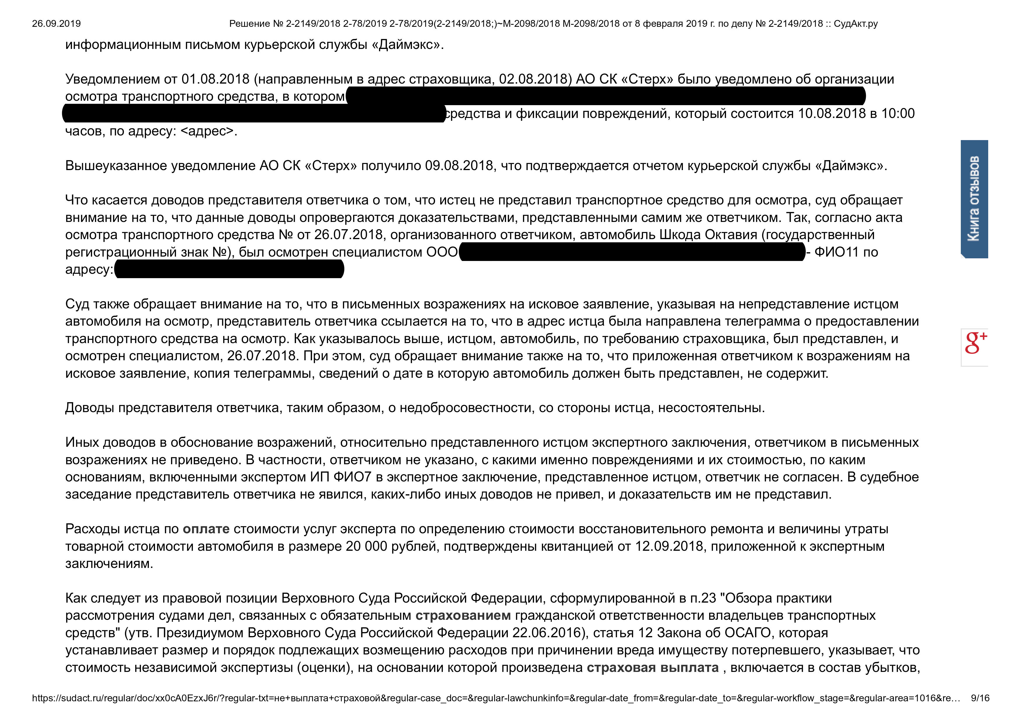 Требование к страховой компании о взыскании ущерба в результате ДТП