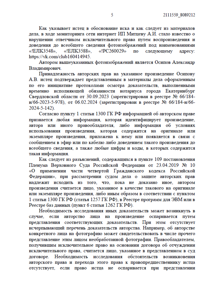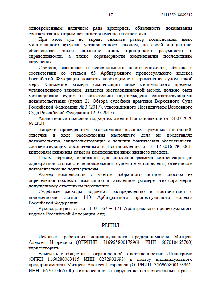 • Ответчик заявил, что узнал о нарушении только из нашей претензии и сразу удалил фото. По их версии, период незаконного использования составил всего 1 месяц.