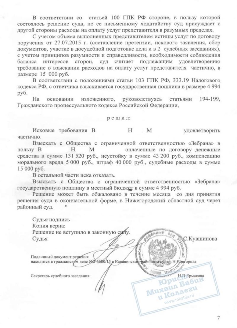 Истица потребовала не только вернуть деньги, уплаченные ею по договору, но и взыскать с организации-продавца 89 960 рублей за то, что её требования не были удовлетворены до суда.