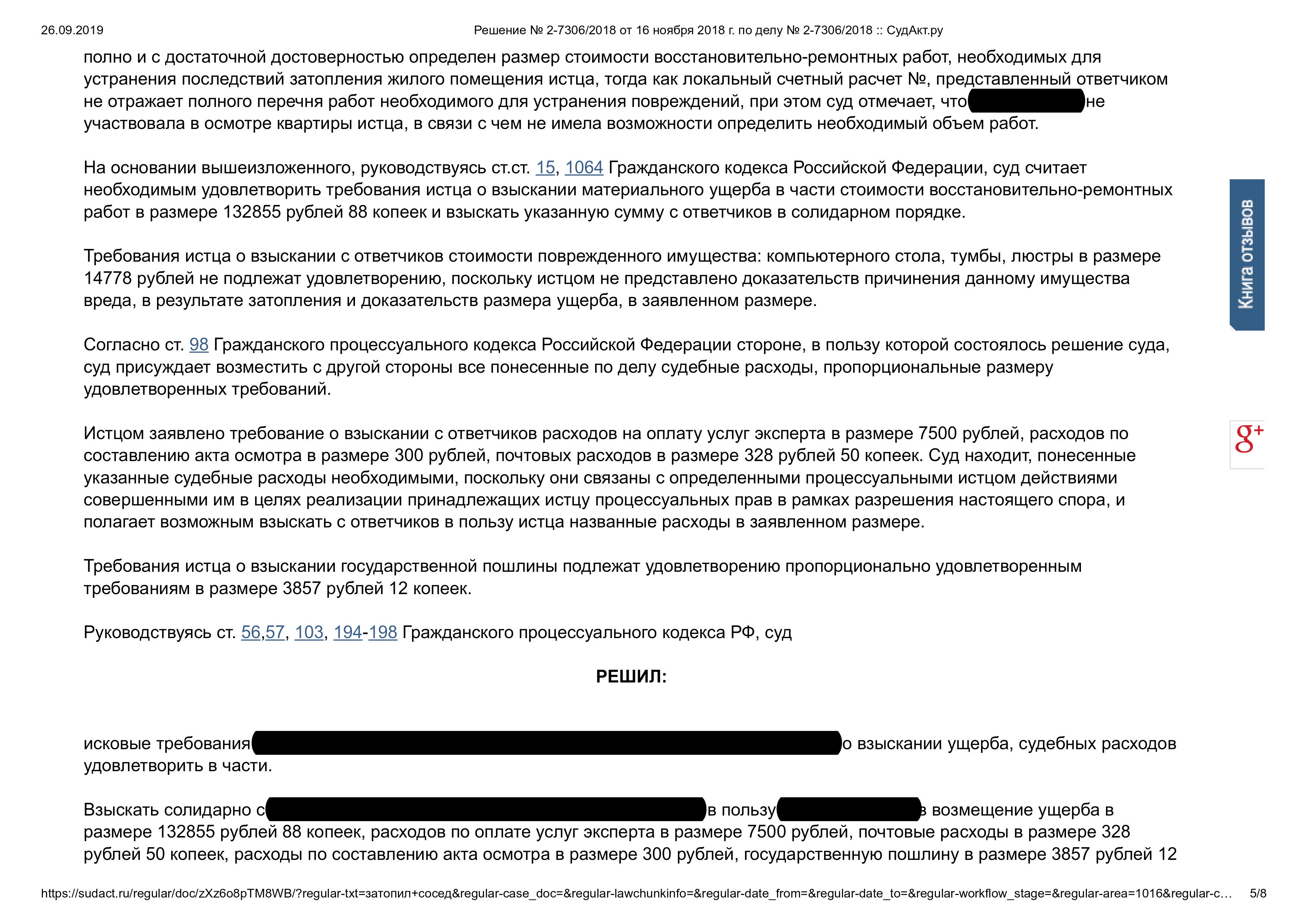 Возмещение ущерба после залива квартиры